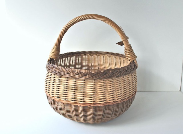 サイズ: 上端の直径34cm、ハンドル含む高さ38cm、深さ20cm 程度 ラトビアの首都リガ市の郊外にある工房から送ってもらっているバスケットです。柳を育てて、煮込んで、乾燥させて・・・、と材料作りから編み上げるまでの全工程が熟練の職人さんによる手作業で行われています。柳は濡らすと曲げやすく、乾くと硬くなるので、耐久性があり、バスケットにうってつけの素材!末永くご愛用いただけます。 大きなサイズでコロンと可愛い形、丈夫で安定感があります。 【注意事項】 ・表皮が付いた状態で編まれていますので、ところどころ表皮がめくれているところがございますが不良品ではございません。 ・作業の工程上、ボンド留めの箇所がございます。 ・こちらの商品は一点一点、ラトビアで作られています。写真とサイズや編み目、色味が異なる場合がありますが手仕事の味とご理解下さい。 ・このバスケットは水洗い可能です。洗った後は風通しのいい日陰で完全に乾かしてからお使い下さい。 ・パソコン環境の都合上、実物とお色味が異なる場合がありますので予めご了承下さい。