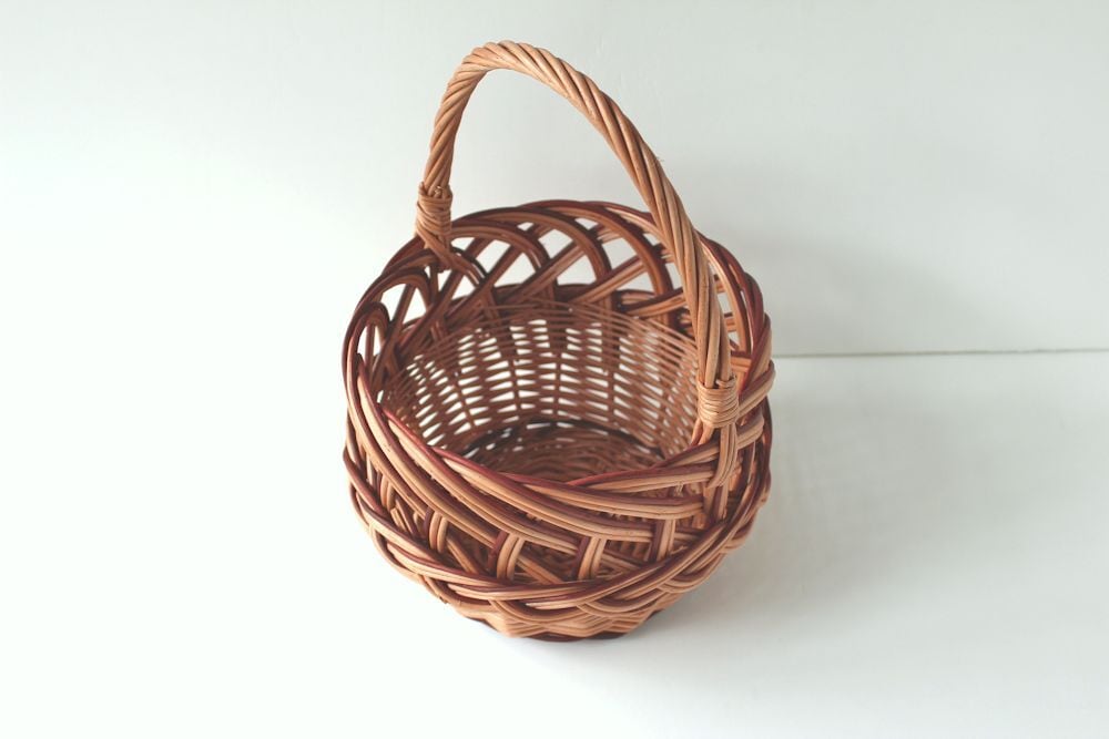 周囲ぐるりが格子上に編まれた可愛いデザインで、小物の収納に使い易い形状です。