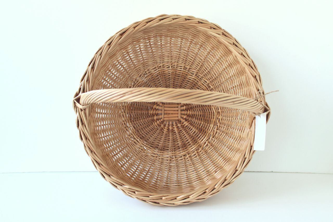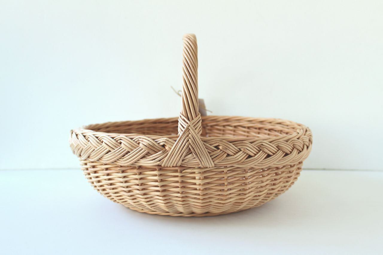 円形で浅いしっかりしたバスケットで、使い易いサイズです。パンや果物を入れたり居間での小物の整理に役立ちそうです。