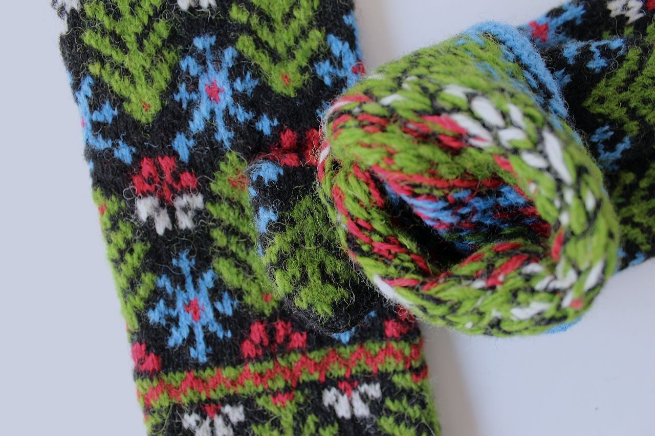 はめると可愛さが一層際立つラトビアのミトン、冷えた指先から手全体がぽかぽか温かくなります。