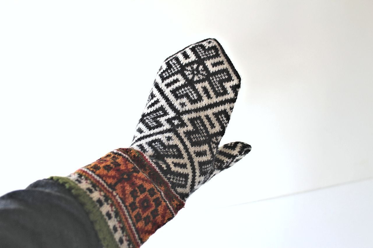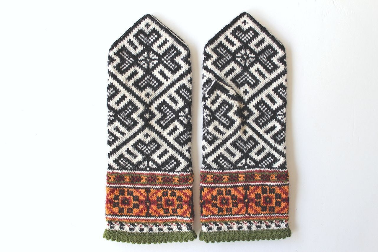 はめると可愛さが一層際立つラトビアのミトン、冷えた指先から手全体がぽかぽか温かくなります。
