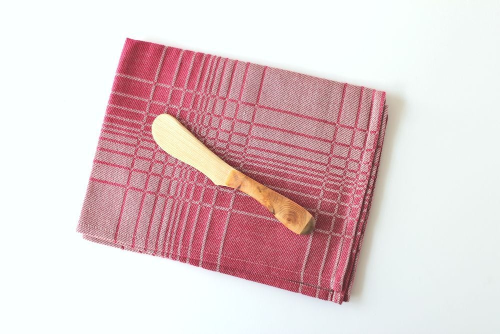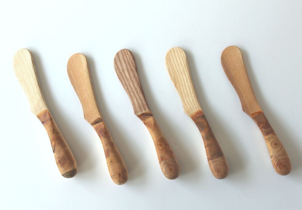 ラトビアの工房で買い付けた木製バターナイフです。とても美しい細工!ネズの木が使用されているので、いい香りがします。職人一家の手によって丁寧に作られています。こういった木製品はラトビアの一般家庭で普通に使われており、美しさはもちろんとても使い易いです。