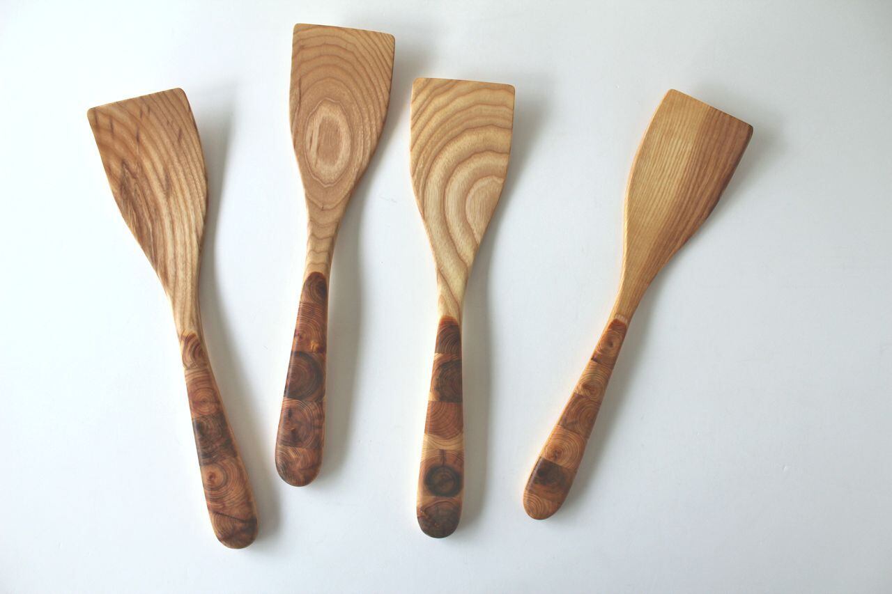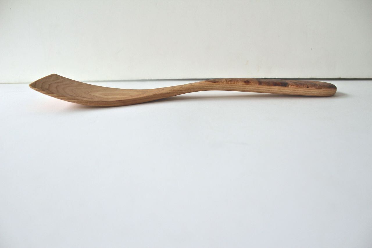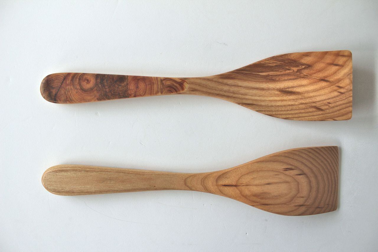 ラトビアの工房で買い付けた木製フライ返しです。持ち手にはとても美しいネズの木の細工!本体はアッシュツリーです。職人一家の手によって丁寧に作られています。こういった木製品はラトビアの一般家庭で普通に使われており、美しさはもちろんとても使い易いです。