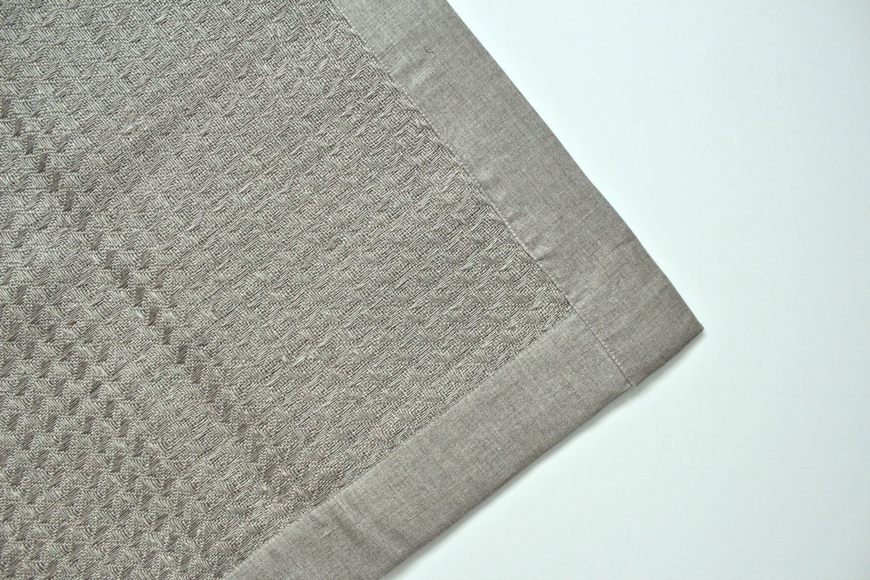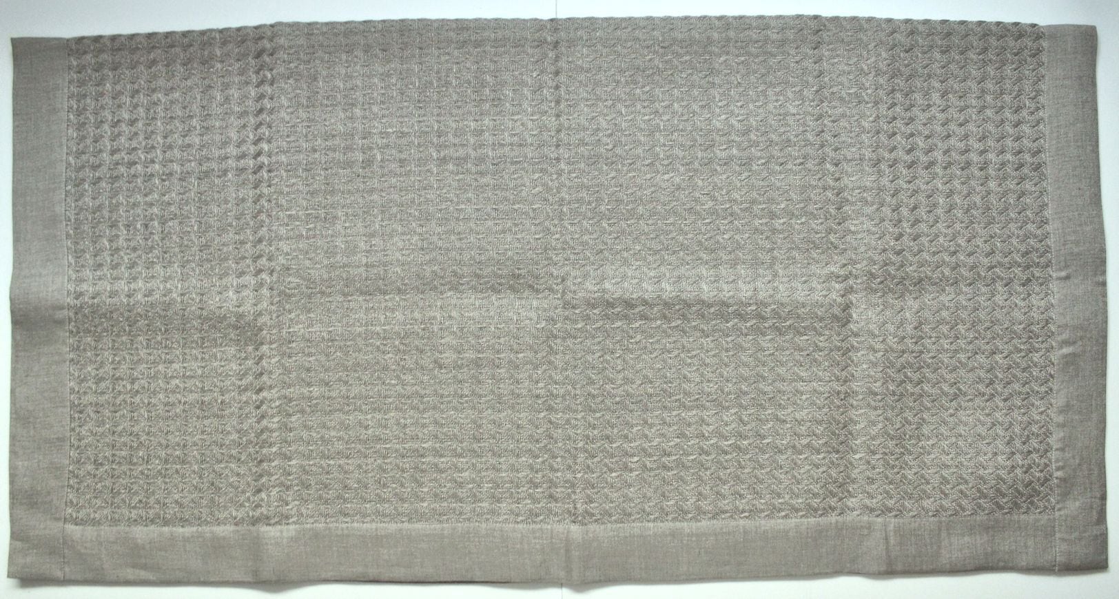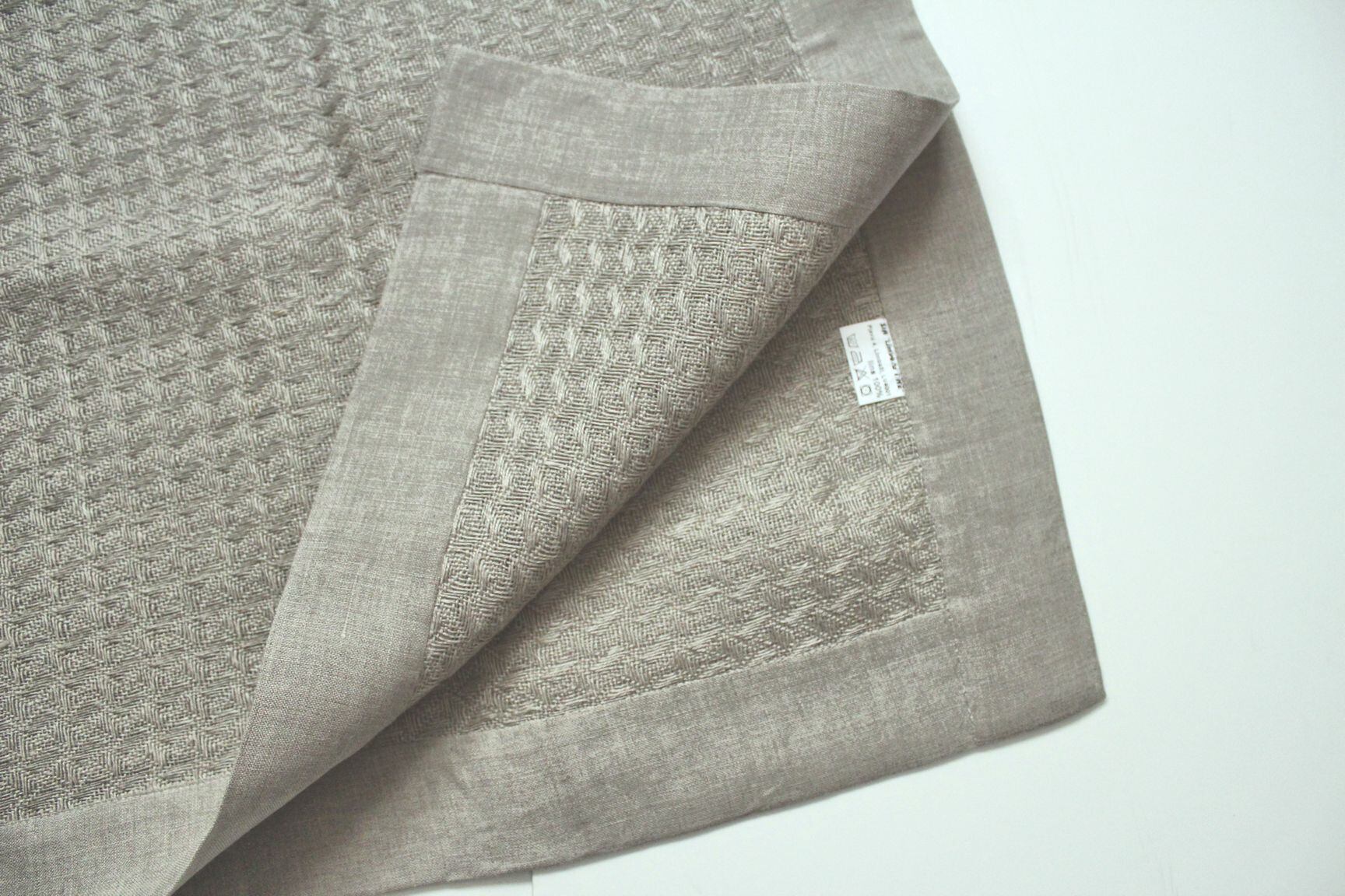 ラトビアで織られたリネン100%の織物です。ラトビア北東部のリンバジ村にあるこの工房は創業110年を超える老舗の織物工房で、腕利きの職人さんたちがその技術を支えています。この商品は織り上がるまでの全工程が簡単な機械を使った手作業で仕上げられています。丈夫なので日常使いにもピッタリです。100x100cm程度の正方形の形をしています。