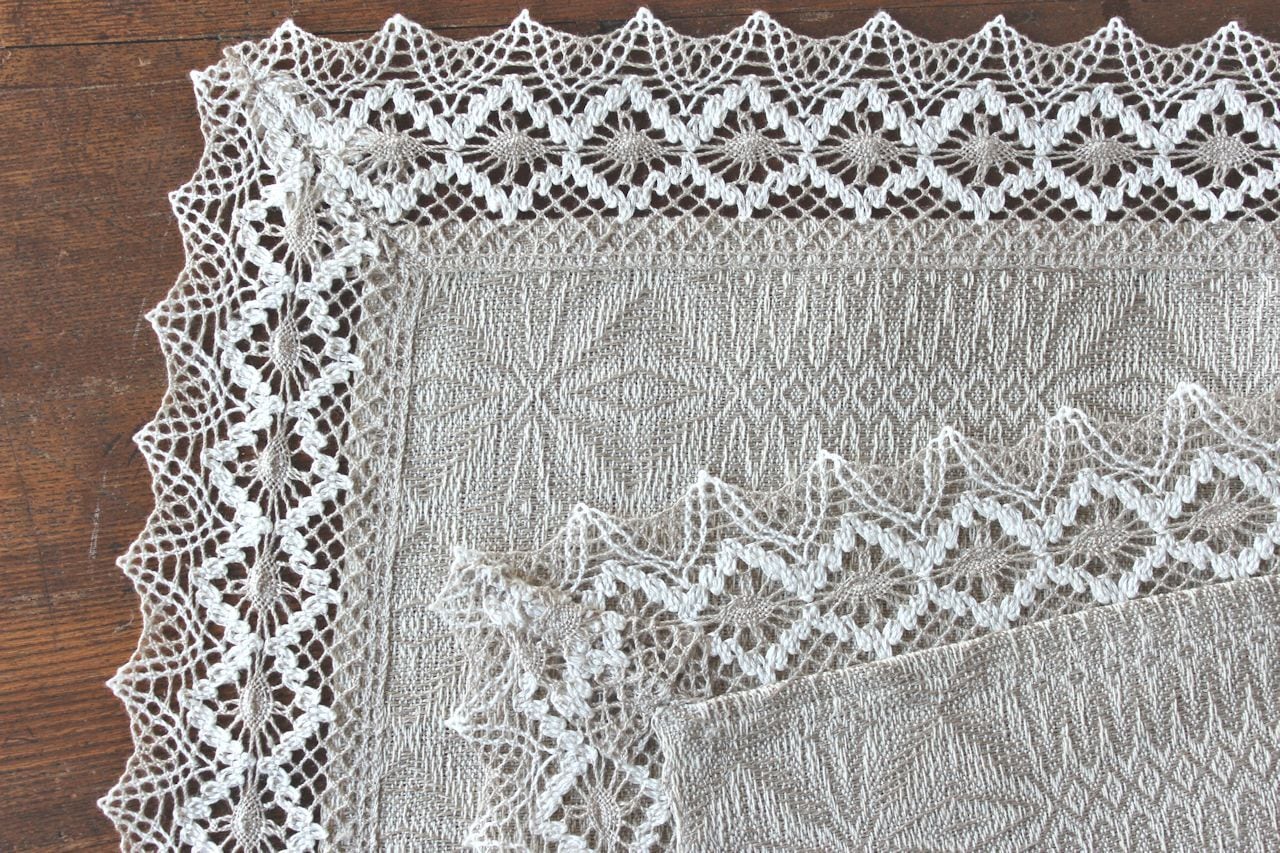 ラトビアで織られたリネン・コットン製の織物です。ラトビア北東部のリンバジ村にあるこの工房は創業110年を超える老舗の織物工房で、腕利きの職人さんたちがその技術を支えています。この商品は織り上がるまでの全工程が簡単な機械を使った手作業で仕上げられています。織り柄がとても美しく繊細ですが、丈夫なので日常使いにもピッタリです。100x100cm程度の正方形の形をしています。