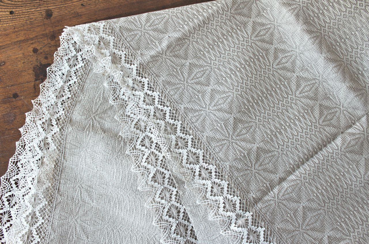 サイズ: 100x100cm程度 ※縁レースを除いた織物本体部分