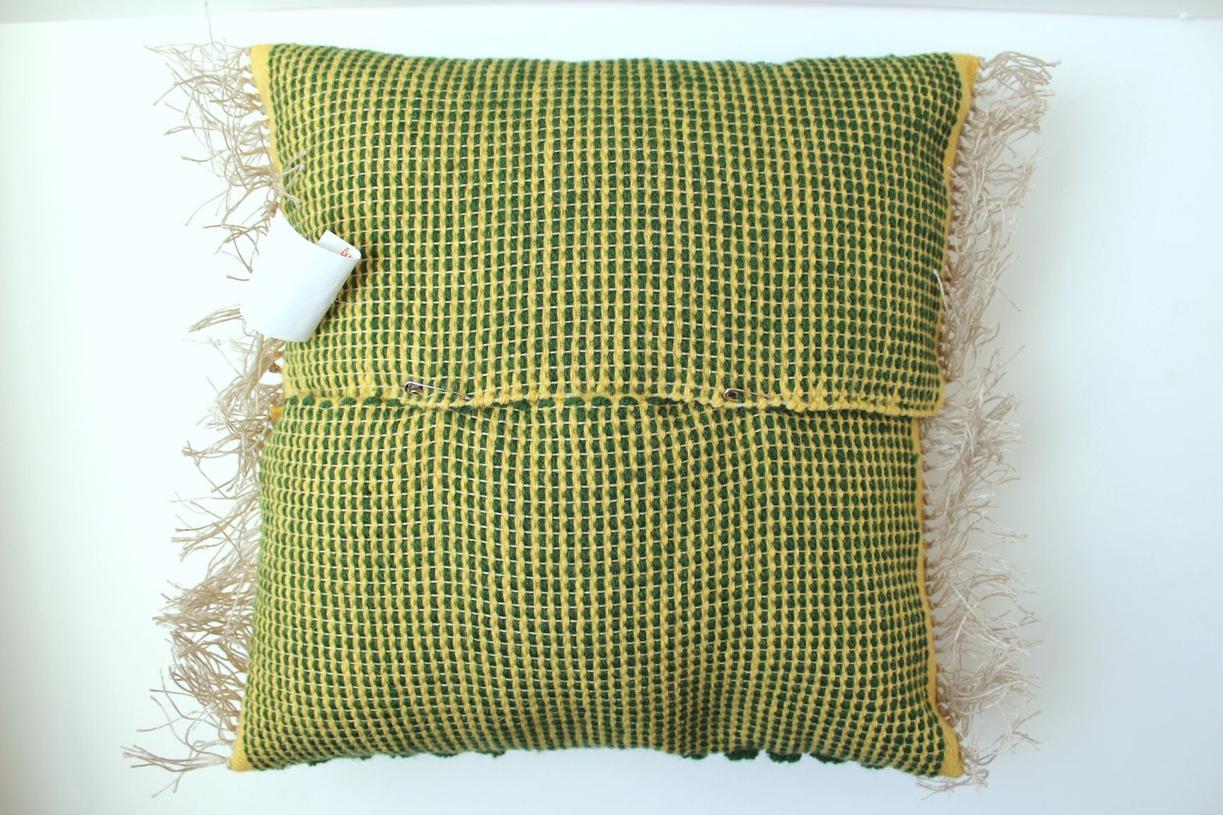 ラトビアで織られたウール&リネン製の織物です。ラトビア北東部のリンバジ村にあるこの工房は創業110年を超える老舗の織物工房で、腕利きの職人さんたちがその技術を支えています。この商品は、天然素材のリネンを縦糸に、横糸にウールを使い、手織りされたクッションカバー(約35x35cm)です。凹凸部も一つ一つ手作業で毛糸を引っ張り上げています。中央の文様が美しい、ふっくらと温かなクッションです。