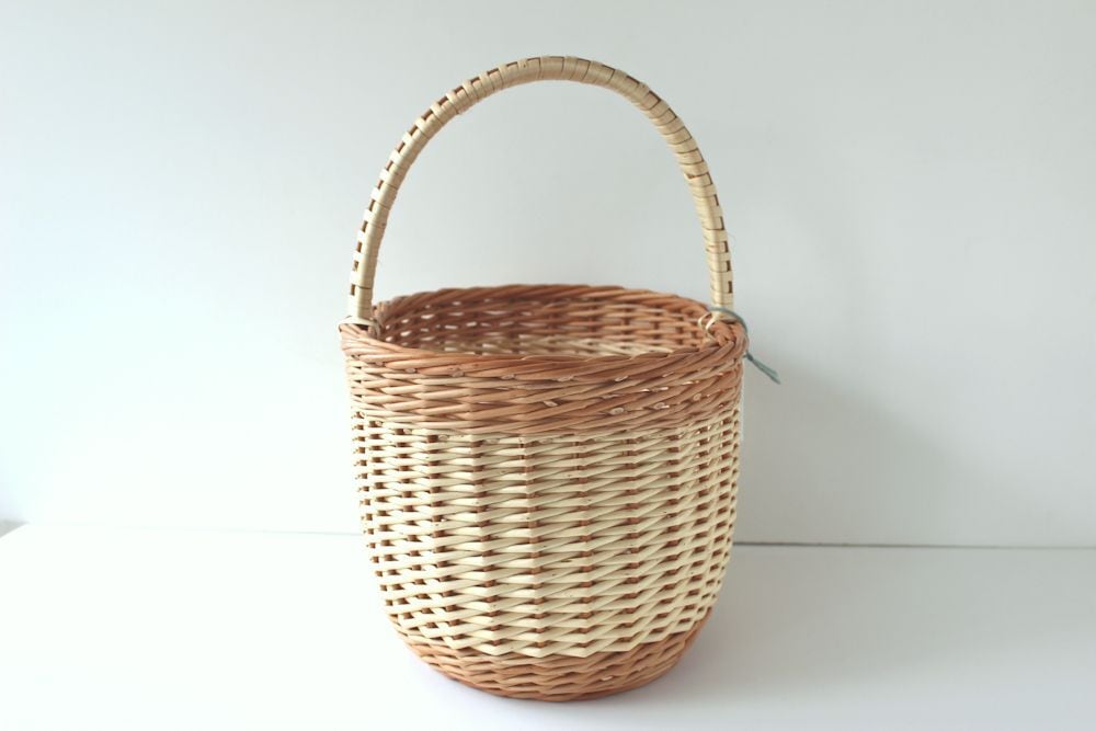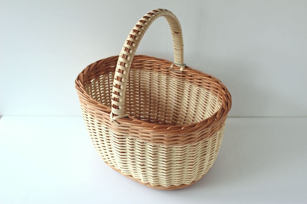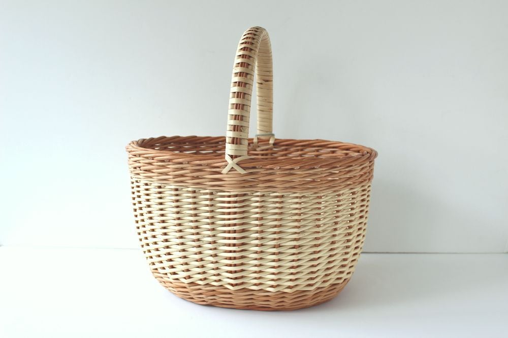 ラトビアの首都リガ市の郊外にある工房から送ってもらっているバスケットです。柳を育てて、煮込んで、乾燥させて・・・、と材料作りから編み上げるまでの全工程が熟練の職人さんによる手作業で行われています。柳は濡らすと曲げやすく、乾くと硬くなるので、耐久性があり、バスケットにうってつけの素材!末永くご愛用いただけます。