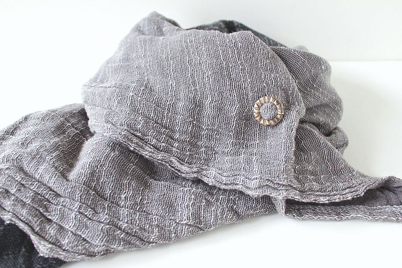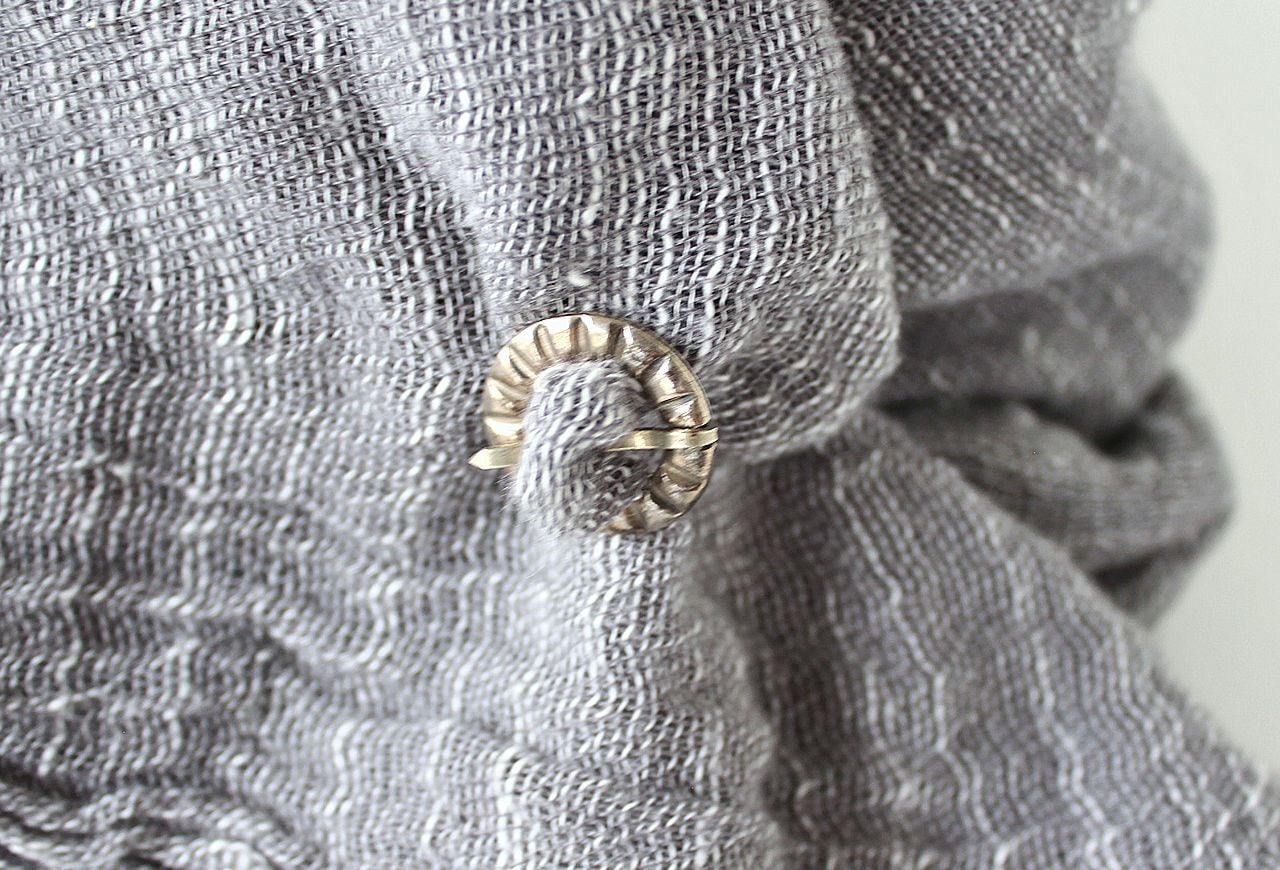 ・着用方法は、7-8枚目の通り、ブローチの輪っかに後ろから布地を引きこみ、その布地に針を貫通させて固定します。針には太さがありますので、穴をあけたくない生地には使用をお控えください。