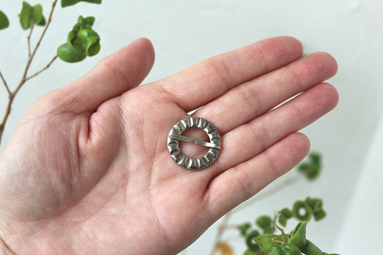 ラトビアでは民族衣装に合わせるブローチをSakta(サクタ)と言い、ブラウスの首元やショールを留めるのに使用されます。プリミティブで印象的なデザインで、日本の普段着でも大活躍します。