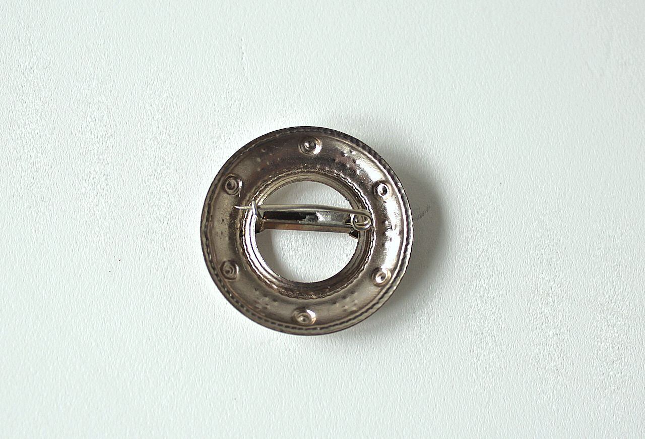 ラトビアでは民族衣装に合わせるブローチをSakta(サクタ)と言い、ブラウスの首元やショールを留めるのに使用されます。プリミティブで印象的なデザインで、日本の普段着でも大活躍します。
