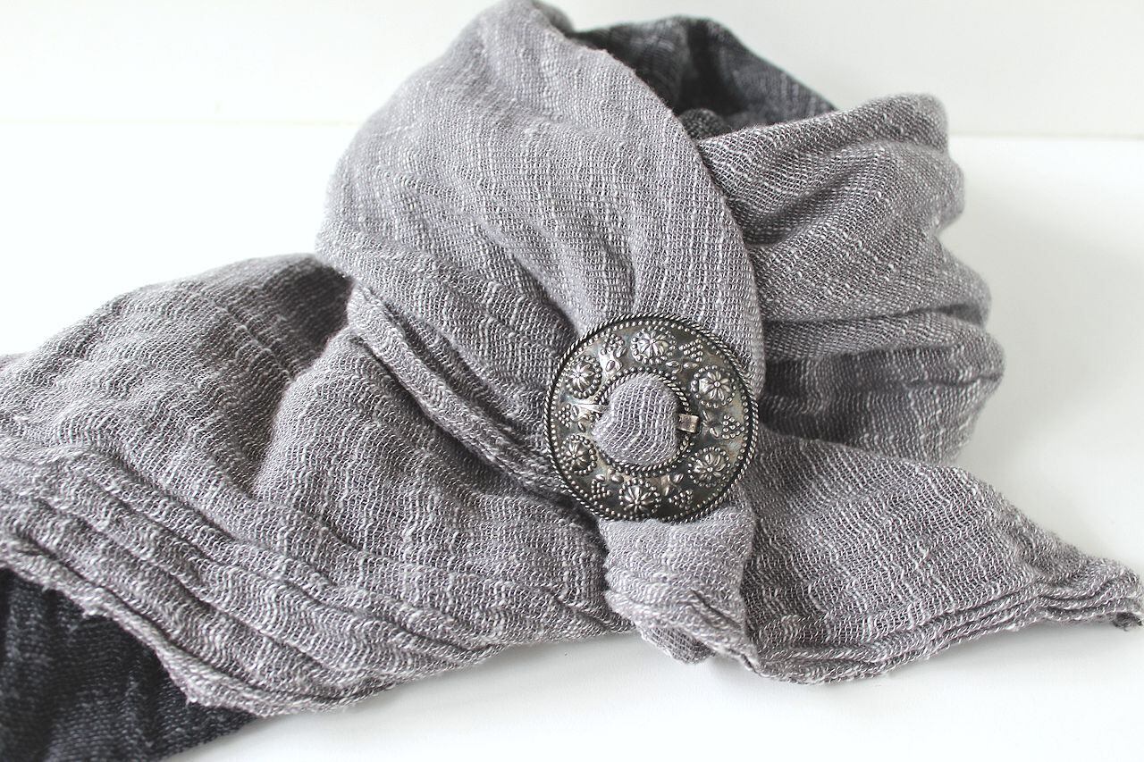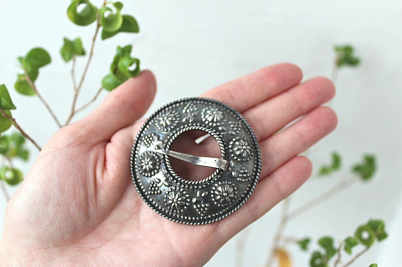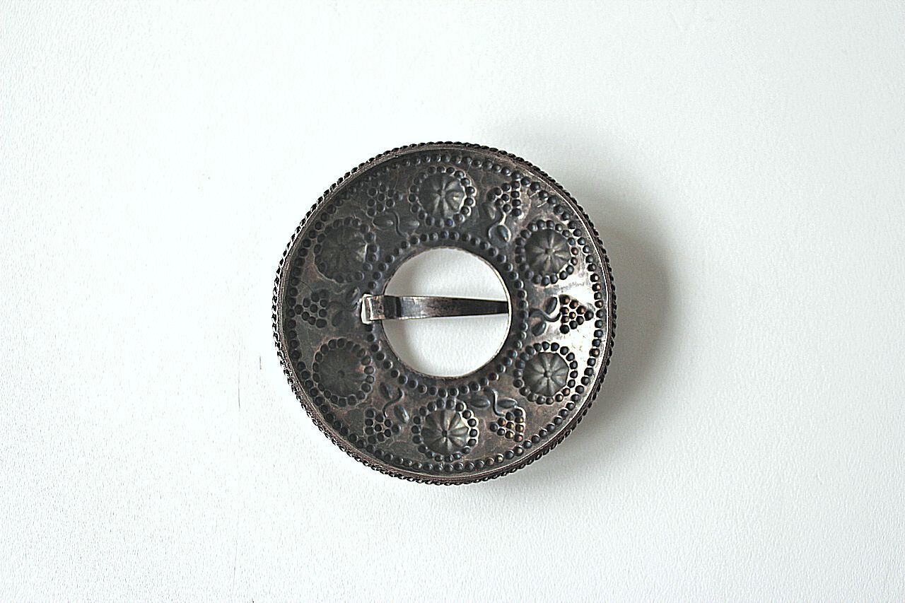 ラトビアでは民族衣装に合わせるブローチをSakta(サクタ)と言い、ブラウスの首元やショールを留めるのに使用されます。プリミティブで印象的なデザインで、日本の普段着でも大活躍します。