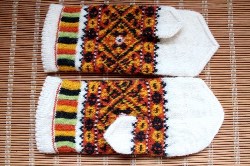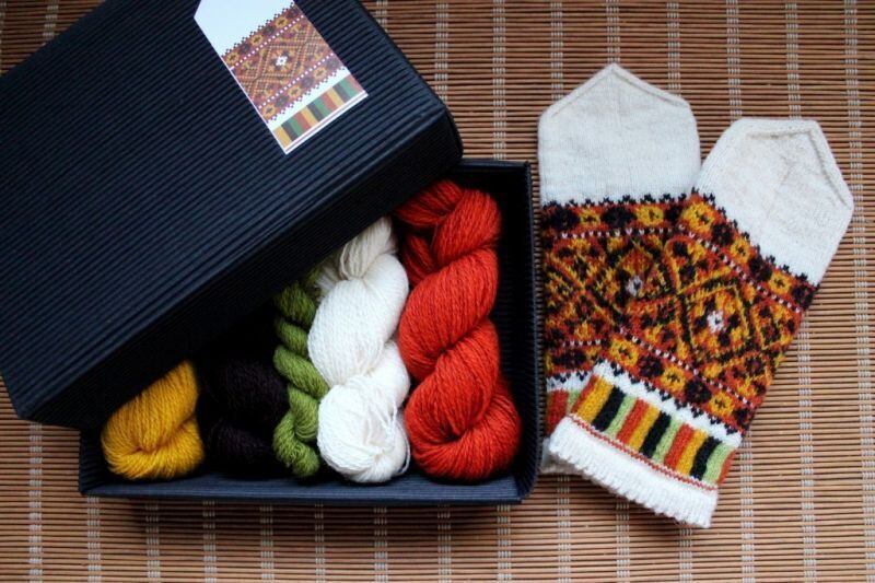 ラトビアの伝統柄のミトンの手編みキットです。ある程度編み物をされている方向けの商品です。
